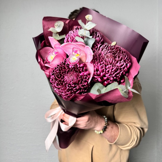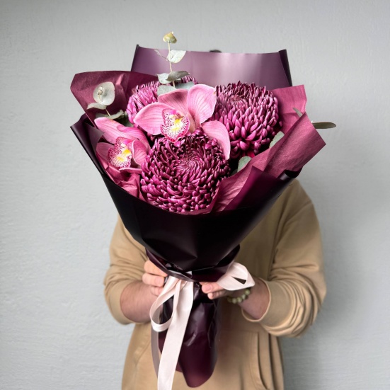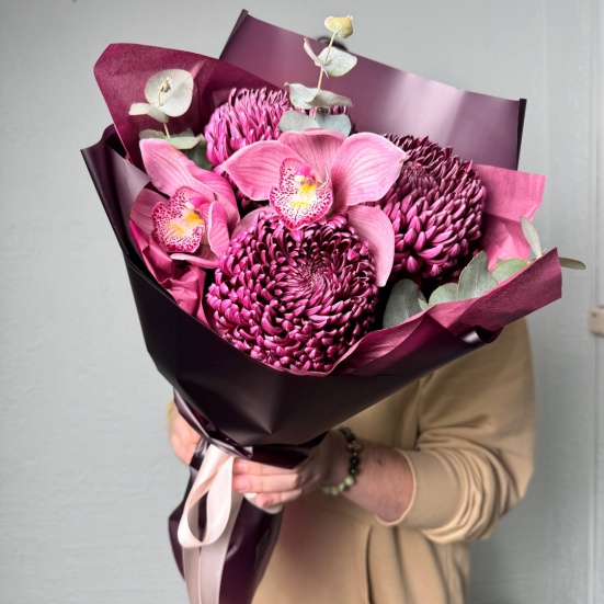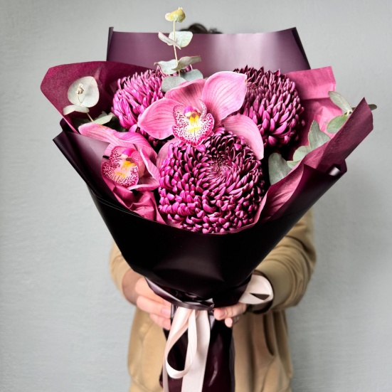 Букет из хризантем Бигуди и Орхидей в Новокузнецке