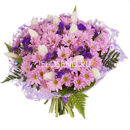 Заказывали вот такой букет. Скажу сразу, я был удивлен шикарностью этих цветов. Цветы были очень хорошие, букет был шикарный.